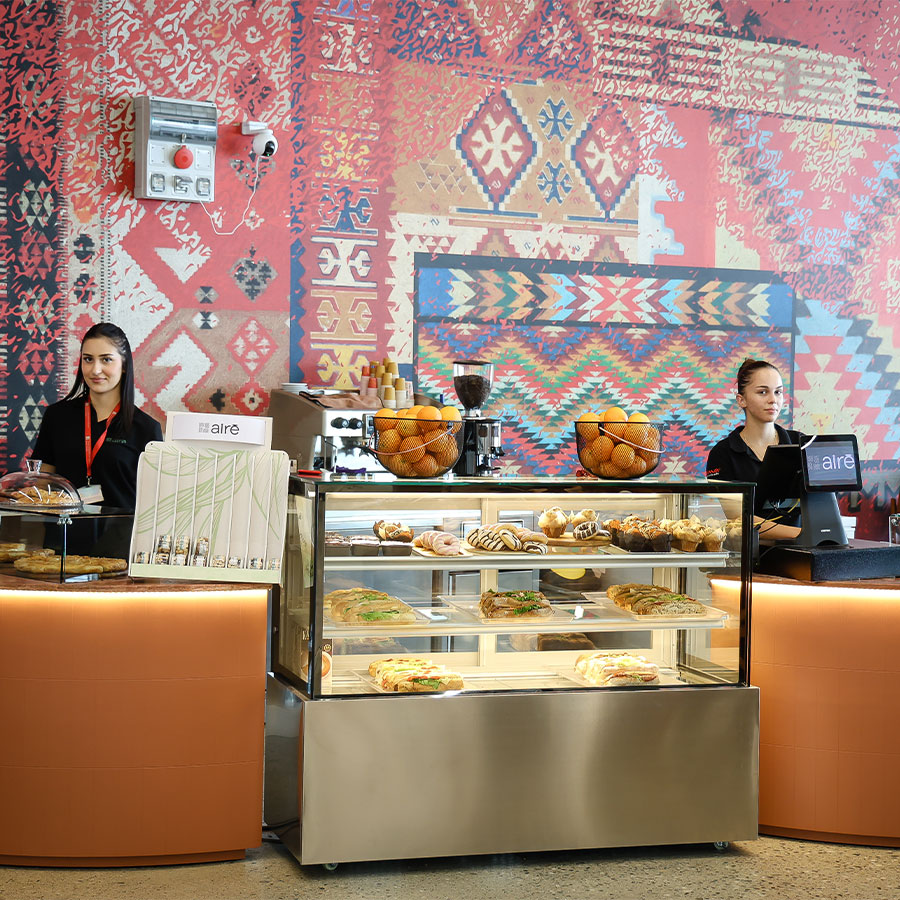 Që në hapin e parë, Aire të fton me dizajnin modern dhe elegant, të frymëzuar nga ideja e një “oazi mbi re”. Çdo detaj, nga arredimi te muzika e butë, është menduar për t’ju ofruar një eksperiencë të këndshme dhe relaksuese, duke sjellë një ndalesë ndryshe në itinerarin tuaj.